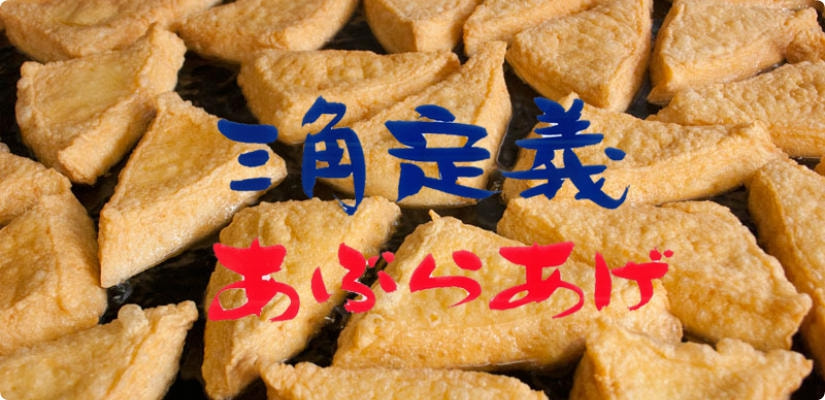 - 当店のあぶらあげは、創業当初から、油揚げ用豆腐を三角形にし、一枚一枚手揚げをしてきました。