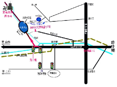 国道48号線を左折し山形方面へ走行し熊ヶ根橋交差点を右折