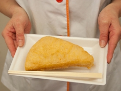 - 理由は、創業当初は、丸い揚げ鍋を使用していたので、一度にたくさんの油揚げが出来るようにと言う工夫からでした。